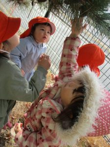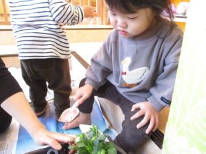 子どもたちは、それを嬉しそうに集めたりちぎったりして、それぞれの遊びを見つけ楽しんでいます