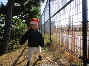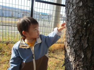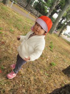 お散歩コースである総合グランドには色づいたイチョウの木もあり、見上げながら『黄色いね~!』とはしゃぐ姿も見られます