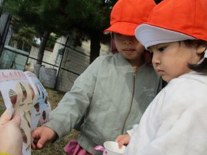 どんぐりのイラストと照らし合わせ、どの種類なのか探しています