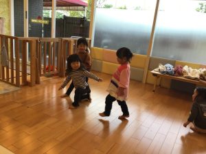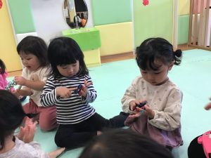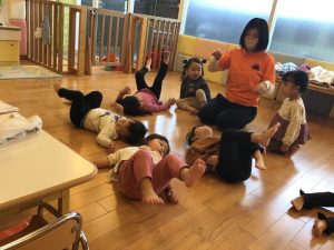 まずはリトミックの歌に合わせて歌いながら