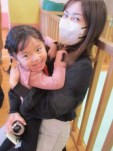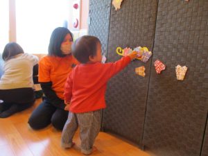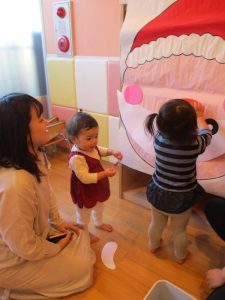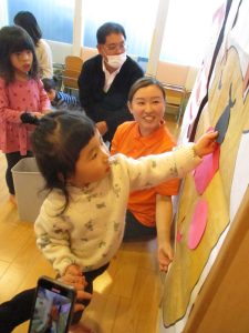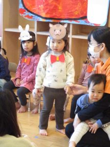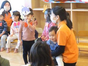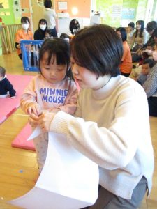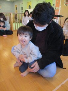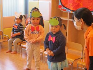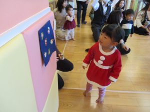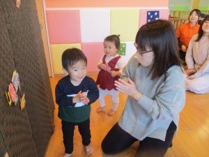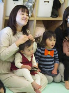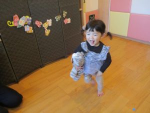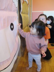 いつもは元気よく返事をしたり、身振り手振りで表現したりしているいちご組さんでしたが、今日は少し遠慮気味!?
