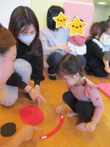 初めての親子発表会ということもあり、いつもと違う雰囲気に子どもたちもソワソワしていましたね![]()