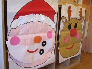 それぞれ目や鼻などパーツを選び、サンタさんとトナカイの顔にペタッ![]()