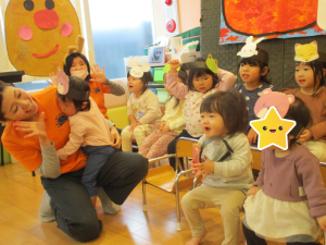 サンタさんが目の前にいるということでちょっぴり緊張した様子も見られましたが、ストーリーが進むにつれ調子を取り戻し、みんなが集まると大はしゃぎの子どもたちでした