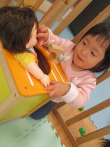 おままごとでは人形のお世話で忙しそうに遊んでいます