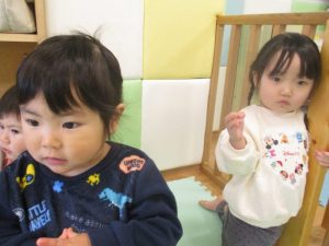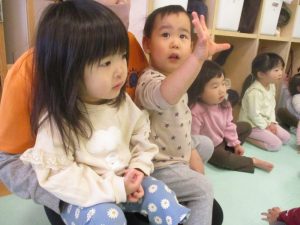 12月の誕生会で見たお話ということもあって、親近感をもっている様子の子どもたち![]()
