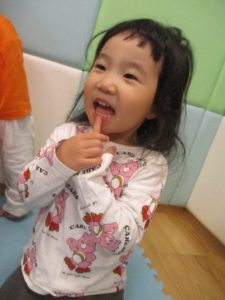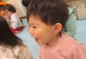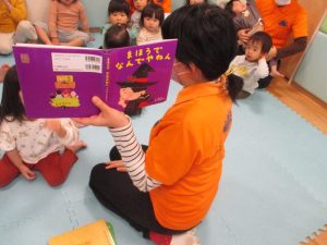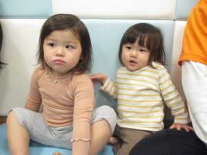 最近は読み聞かせの時に、りんご組さんのお膝に座るもも組さんという光景がよく見られます![]()