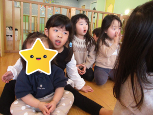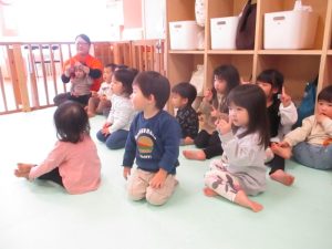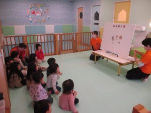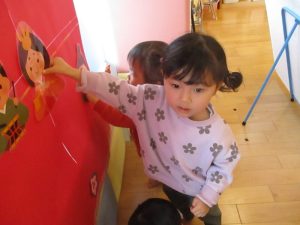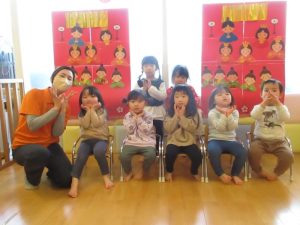 まずは、ひなまつりの由来についてのお話を聞いて「うれしいひなまつり」の歌のパネルシアターをみました🌸歌いながら体を揺らしながら楽しんでいました😊