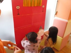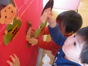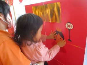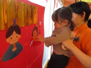 お雛様、お内裏様、3人官女、5人囃子がかくれんぼしていて、それぞれ頑張って探しました!!
