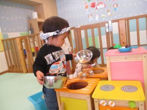 いちご組さんともも組さんのおままごとの様子です🍴
