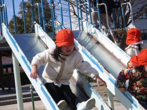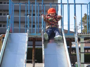 すべり台を滑ったり、、