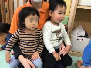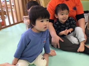 指さしをしてカードを楽しむいちご組さんもも組さん☆