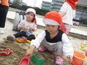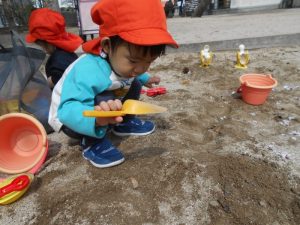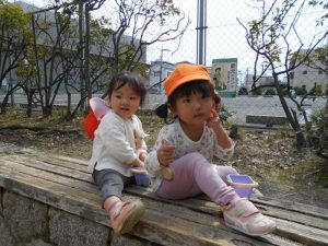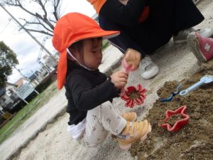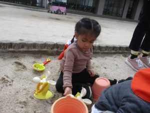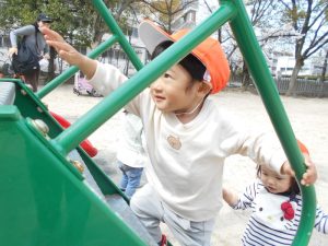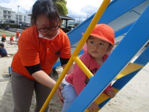 戸外へ出て気分転換になったようで遊んでいくなかで笑顔もみられるように😆