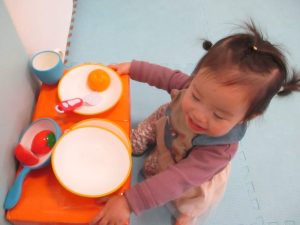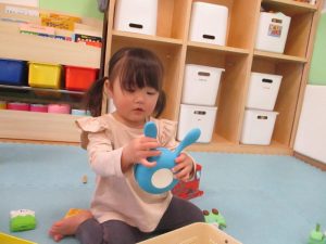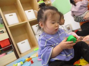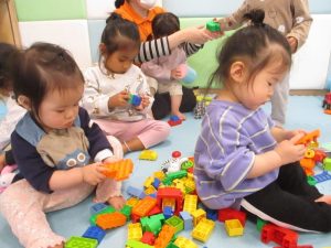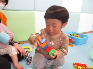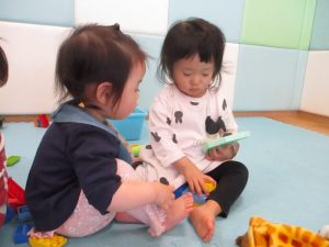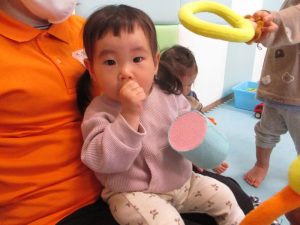 最初は慣れない環境に涙が出てしまう子もいましたが、少しずつ興味をもったおもちゃで遊んでみたり、保育者のお膝に座って落ち着く姿がみられるようになってきました🌟