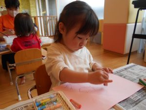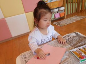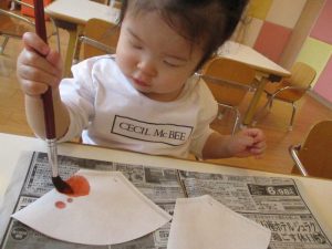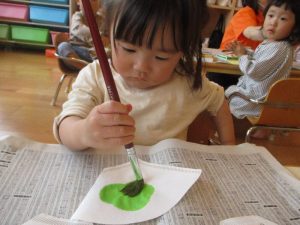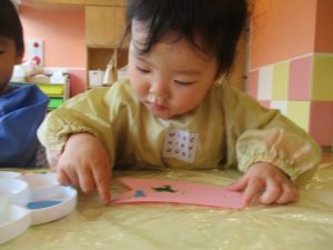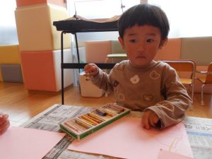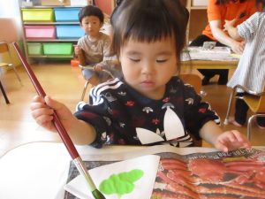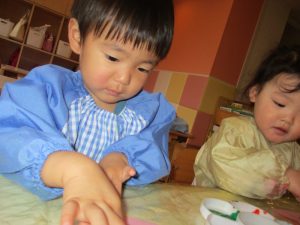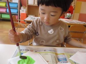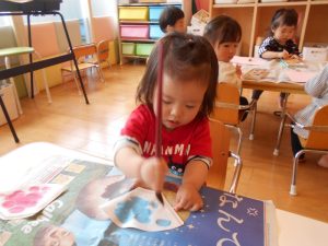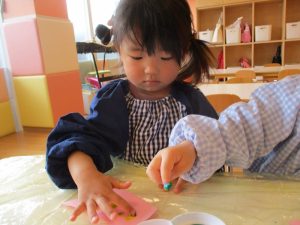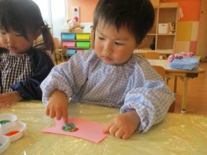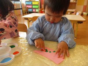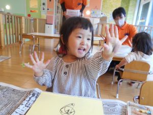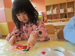 何色か絵の具を用意し、子どもたちが自分で好きな色を選びましたよ!