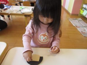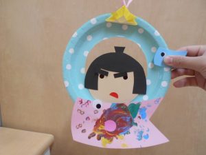 こいのぼりの目と金太郎の顏のパーツも子どもたちが貼りました🎵
