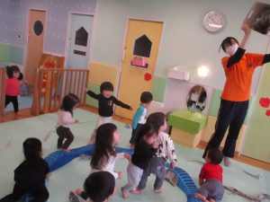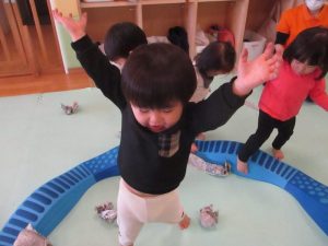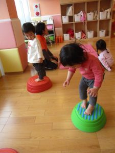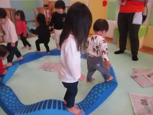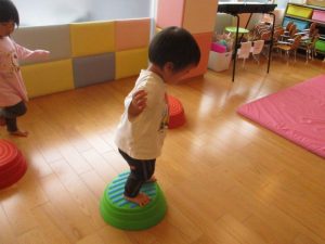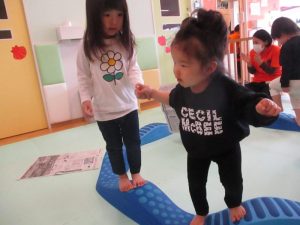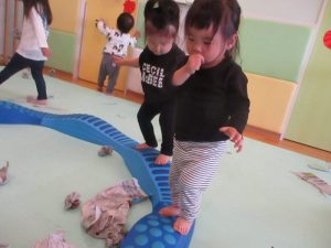 こちらも運動遊びで用意すると、のってバランスをとったり、ストーンからストーンへ渡ったりして楽しんでいます🎶