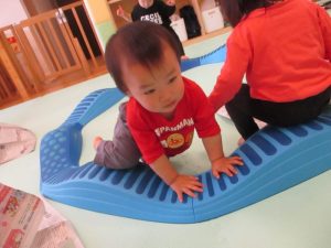 でこぼこした感触と上下にあがったりさがったりする感触が足の裏で楽しめるバランスウェーブ!