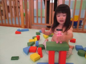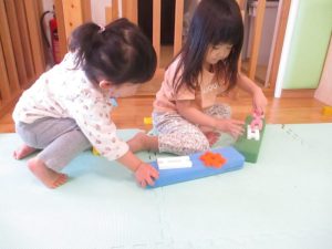 ウレタン積み木と組み合わせて遊ぶ姿も✨