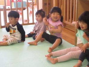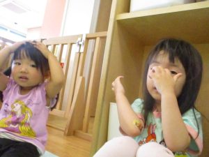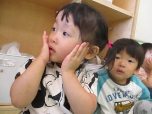 かみなりどんやってくるかなぁ〜と聞くと「こわ〜い」と言いながらも楽しそうな子どもたち😌