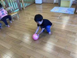 2歳児はボールキャッチにも挑戦しました![]()