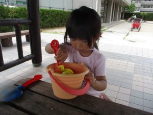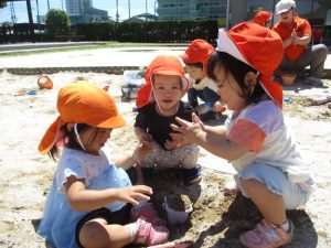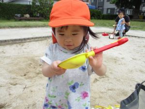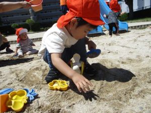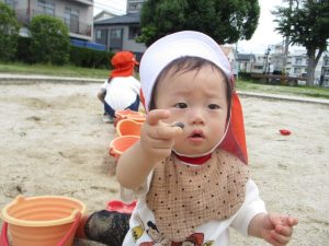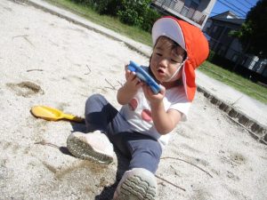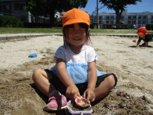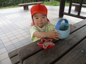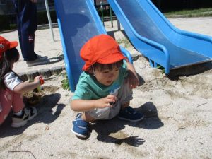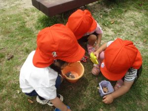 砂場では砂や石を集めたり、ありの巣を見つけて観察したり、、、