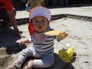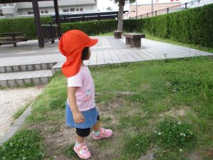 気温もあがってきて少し汗ばむ暑さになってきましたが、水遊びが始まるまで戸外遊びを楽しめたらと思います😊