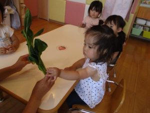 \ 今回は小松菜を子どもたちにちぎってもらいました🥰 /
