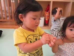 かたつむりが出てくると、グーとチョキでかたつむりを作ろうとする姿がみられました🐌