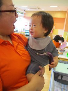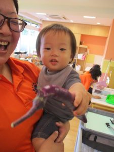 大きな茄子ができたので、また調理してもらって食べようねとお話すると「うん!」「はやくたべたい!」と、楽しみにしている様子が伝わってきました🎵