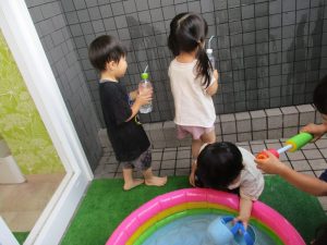 だんだんと要領を掴んだようで、壁に水をかけて遊ぶ子がたくさんいました😂的があると、もっと楽しめそうですね☆