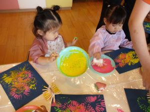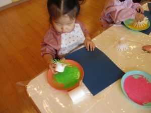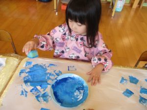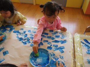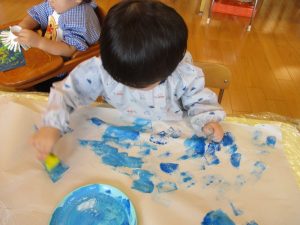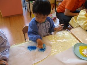 りんご組さんはスポンジでスタンプ遊びをしました🎨!!