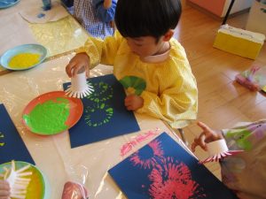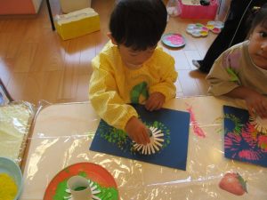 いちご組さんはトイレットペーパー芯でスタンプ🎨!!