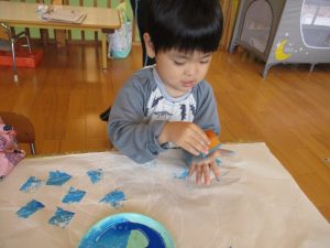 ちょんちょん!と自分で絵の具を付けて、たくさんスタンプを楽しみました💕