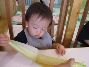 皮を剥いて、見たことのあるとうもろこしになると嬉しそうな笑顔がみられました✨