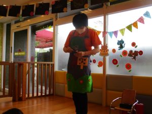 絵本でも見ていたお話だったのですが、音楽を流しながらのエプロンシアターに