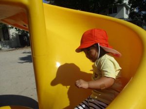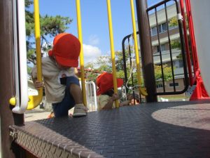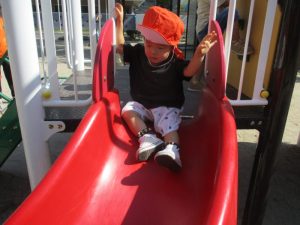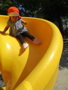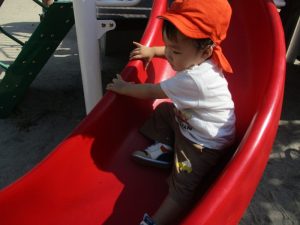 久しぶりの遊具にも、嬉しそうな子どもたち!すべり台を何度も何度も繰り返しすべる子や