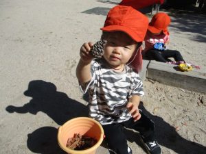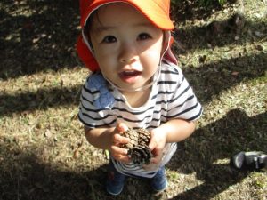 まつぼっくりやどんぐり集めに夢中の子どもたちでした😄