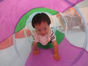 もも組さんもお部屋でサーキットをしたり、トンネルをくぐったり、ボールで遊んだり!