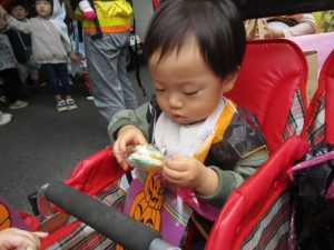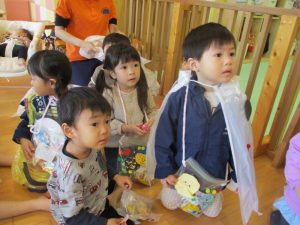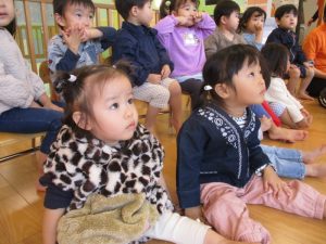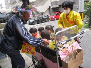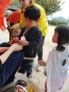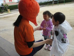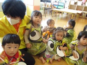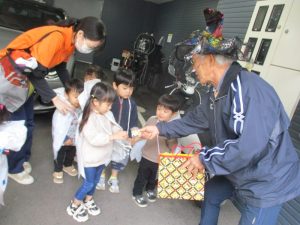 びっくりして少し涙が出てしまうお友だちもいましたが、園長先生の顔が見えると
