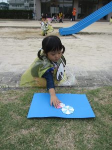 可愛い折り紙が隠されていて、クラスごとに探しました😌