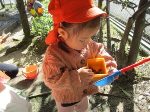 公園では、落ち葉やどんぐり、葉っぱを見つけたり、拾ったりして楽しんでいます🤗