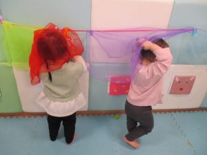 フェルトやシフォンスカーフを使って探索遊びをしました🤩