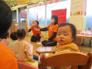 ペープサートしながらのお話だったので、子どもたちも集中して見ていました❗