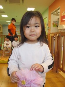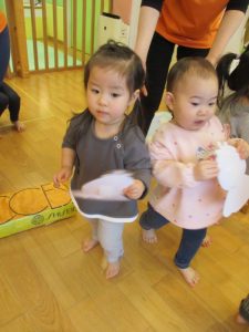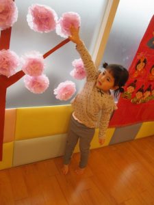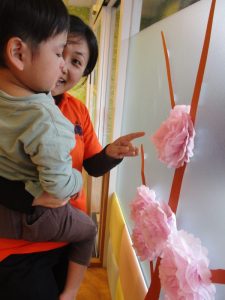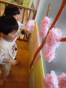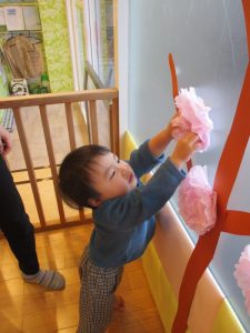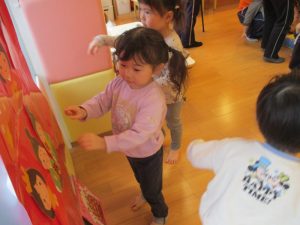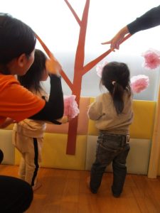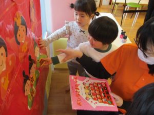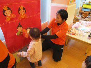 ペープサートの後はひな人形、桃の花探しが始まりました🥰