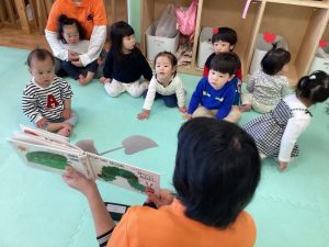 サンライズキッズ保育園では語彙力の発達や集中力の向上などを目的とし、一日10冊以上の読み聞かせを行っています![]()