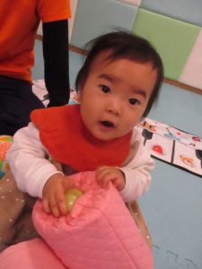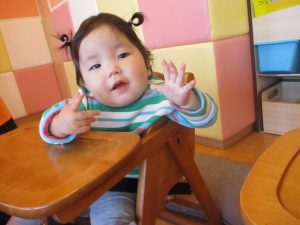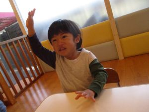 お名前を呼ばれると『はーい!』と手をあげてお返事![]()