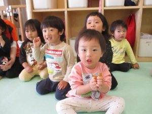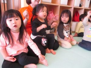 うたが進むにつれ『ゆうびんしゃ!』『せいそうしゃ!』と拳をあげながら子どもたちのかけ声も大きくなっていきます