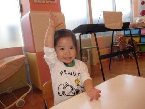 サンライズキッズ保育園 ◎給食の様子 たくさん遊んだあとは、お待ちかねのチキンナゲット♪「やったー!...