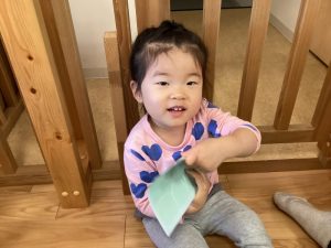 カードに置けて「good job!」と言われるとにっこり笑顔を見せてくれています![]()